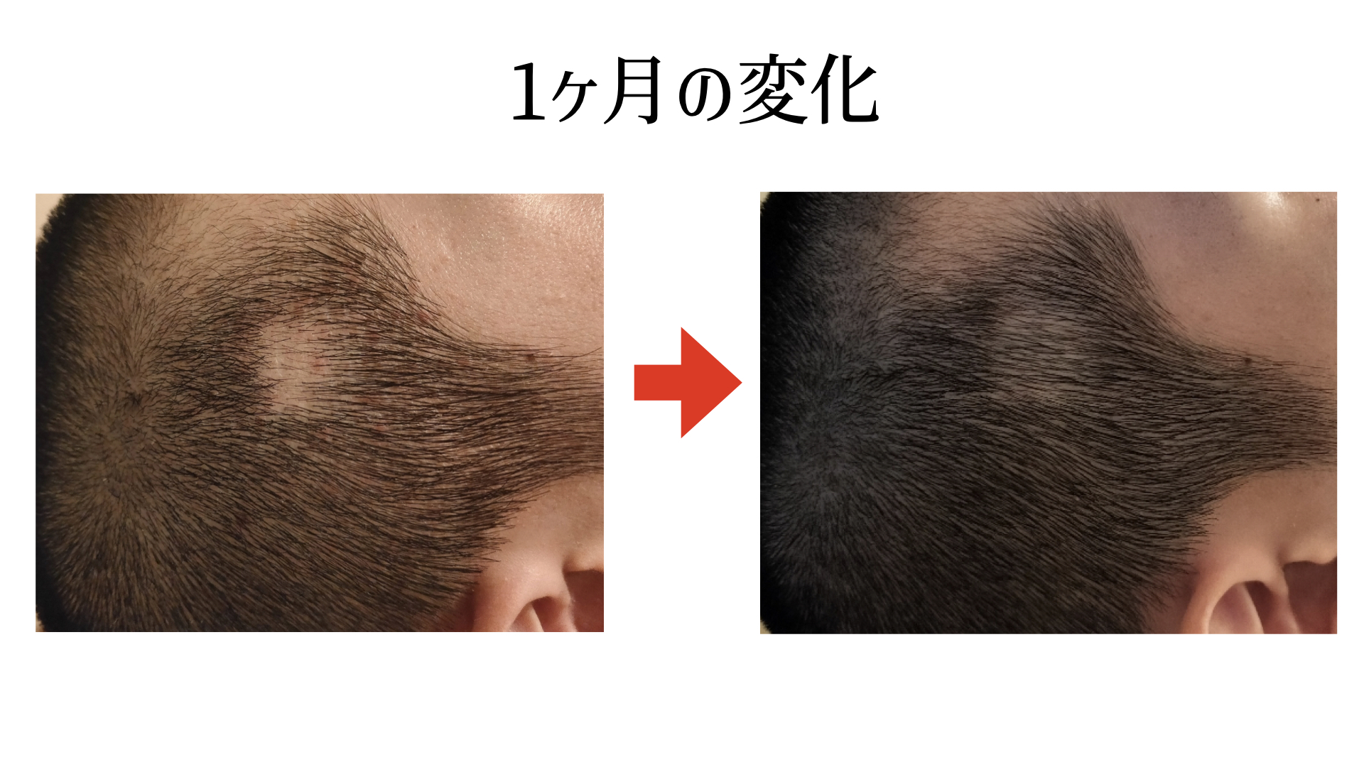 通い始めて3週間ほどで、髪が生えてくるようになり、1ヶ月を過ぎた頃には気にならない程度まで回復しました。