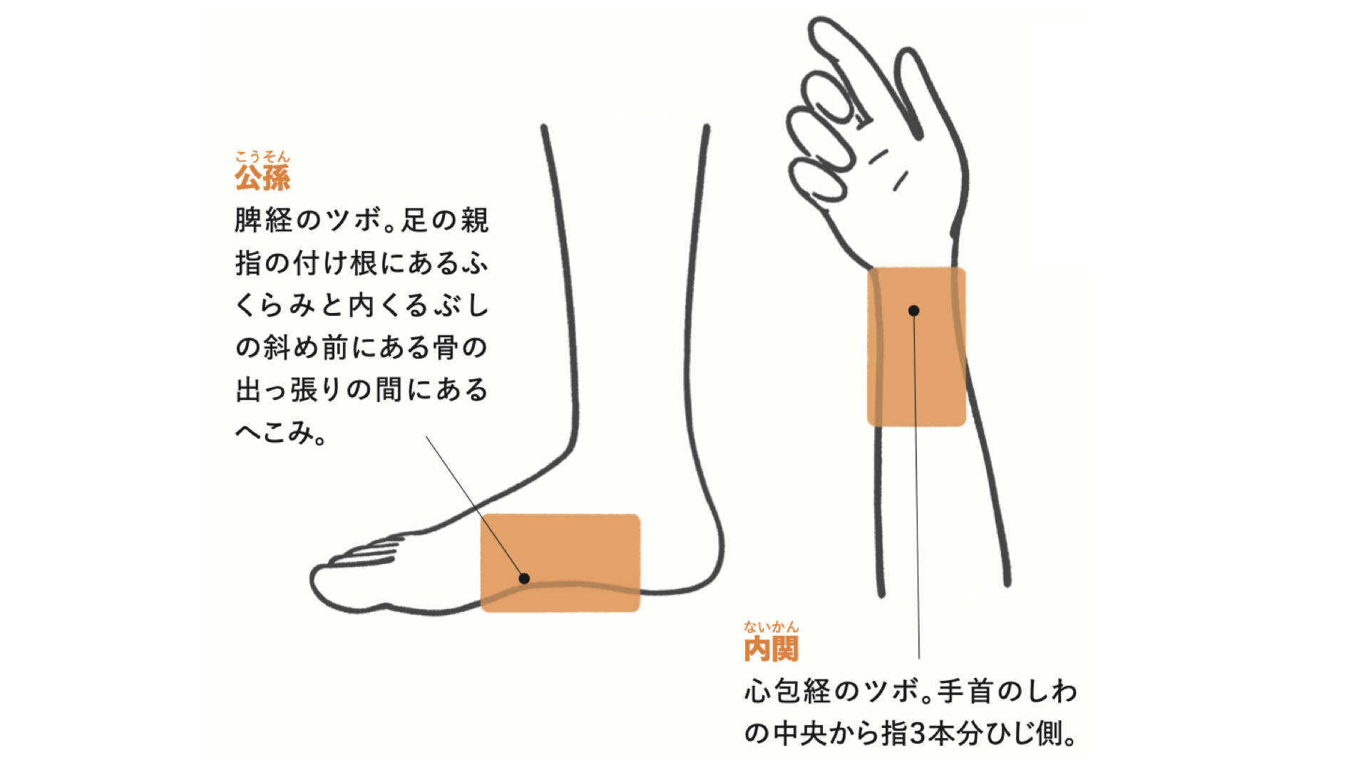 ③ 【自律神経と胃腸を同時に整える】『内関(ないかん)』×『公孫(こうそん)』