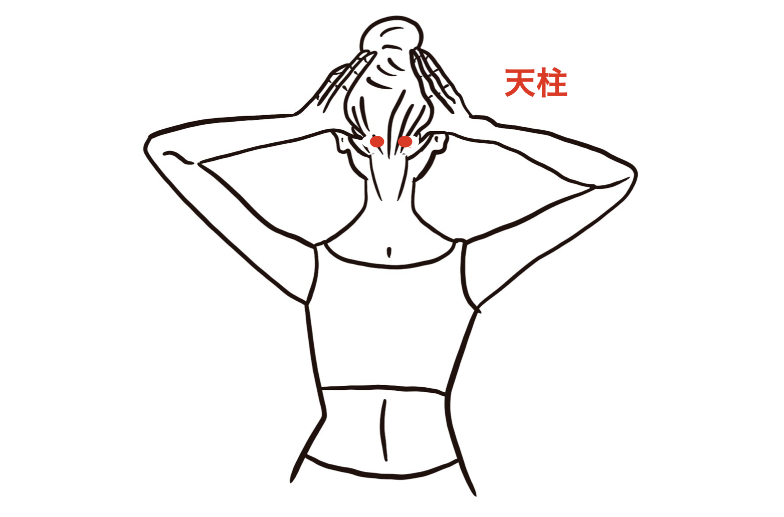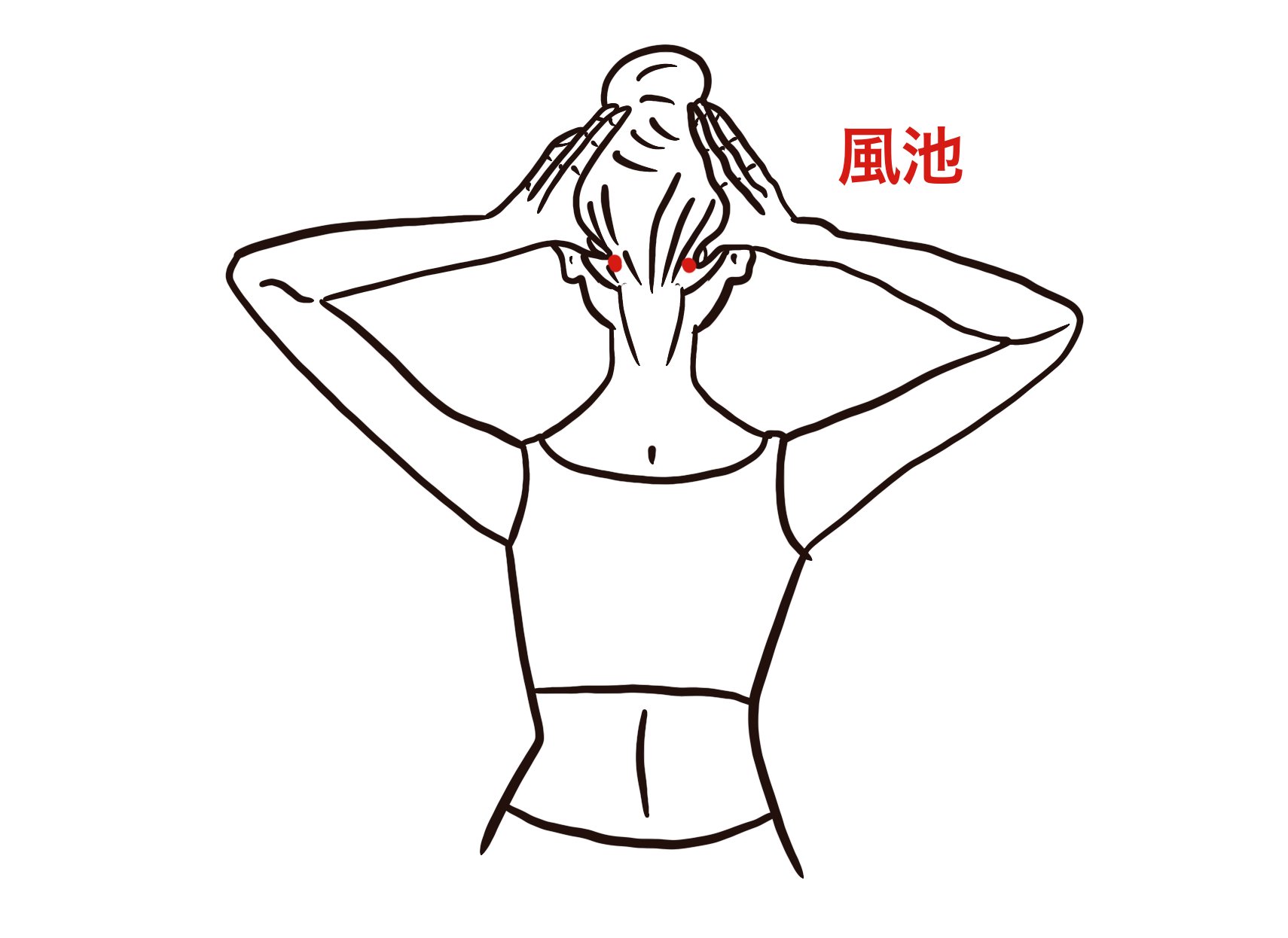 風池と使うことが多い。首の後ろ、後頭部の付け根にあるツボ。