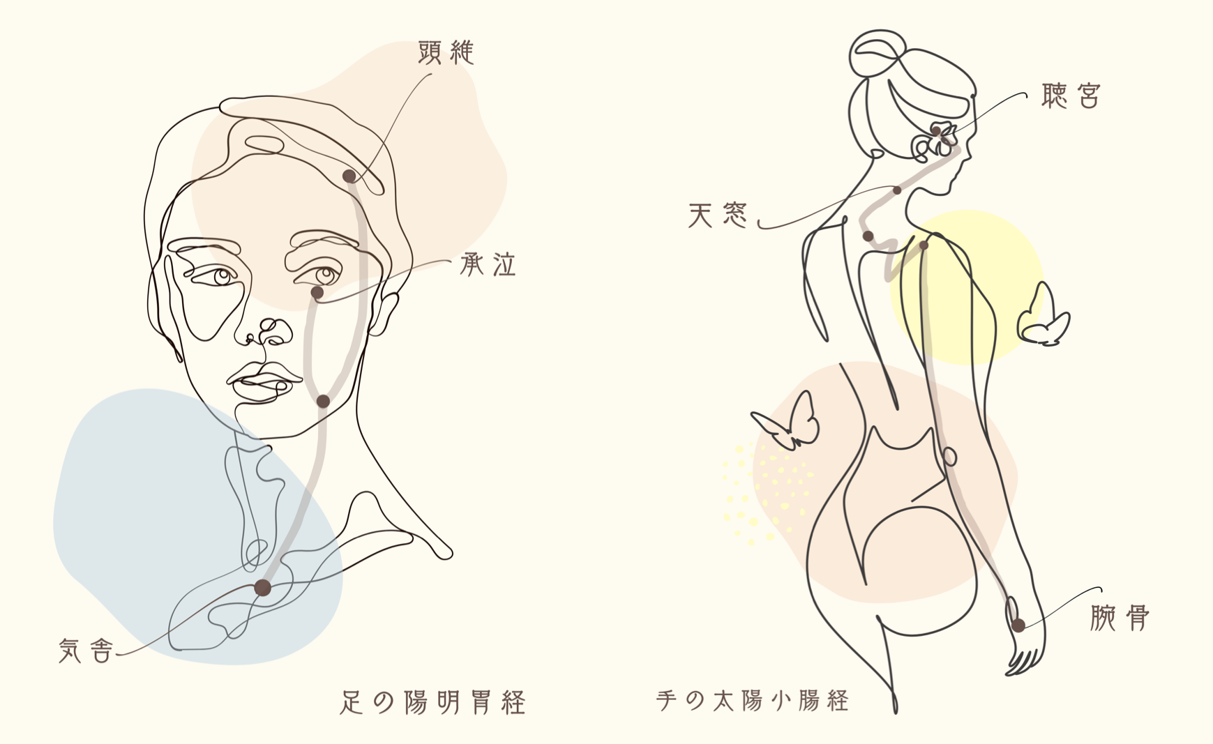 鍼灸では、顔面の神経や筋肉だけでなく、「経絡(けいらく)」と呼ばれる全身のエネルギーの流れを整えることで、神経伝達や血流を促進し、自然治癒力を高めていきます。