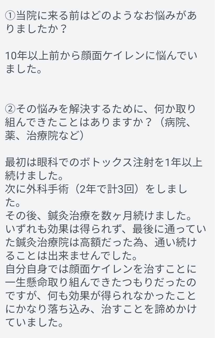 自分自身では顔面痙攣を治すことに一生懸命取り組んできたつもりだったのですが、