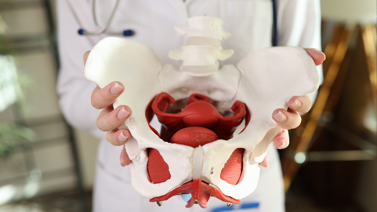 メカニズム:下がってきた内臓が骨盤内の子宮や膀胱、そして陰部周辺を上から押しつぶします。この「重み」が、陰部の不快な圧迫感やズーンとした重い痛み(墜下感)に繋がります。
