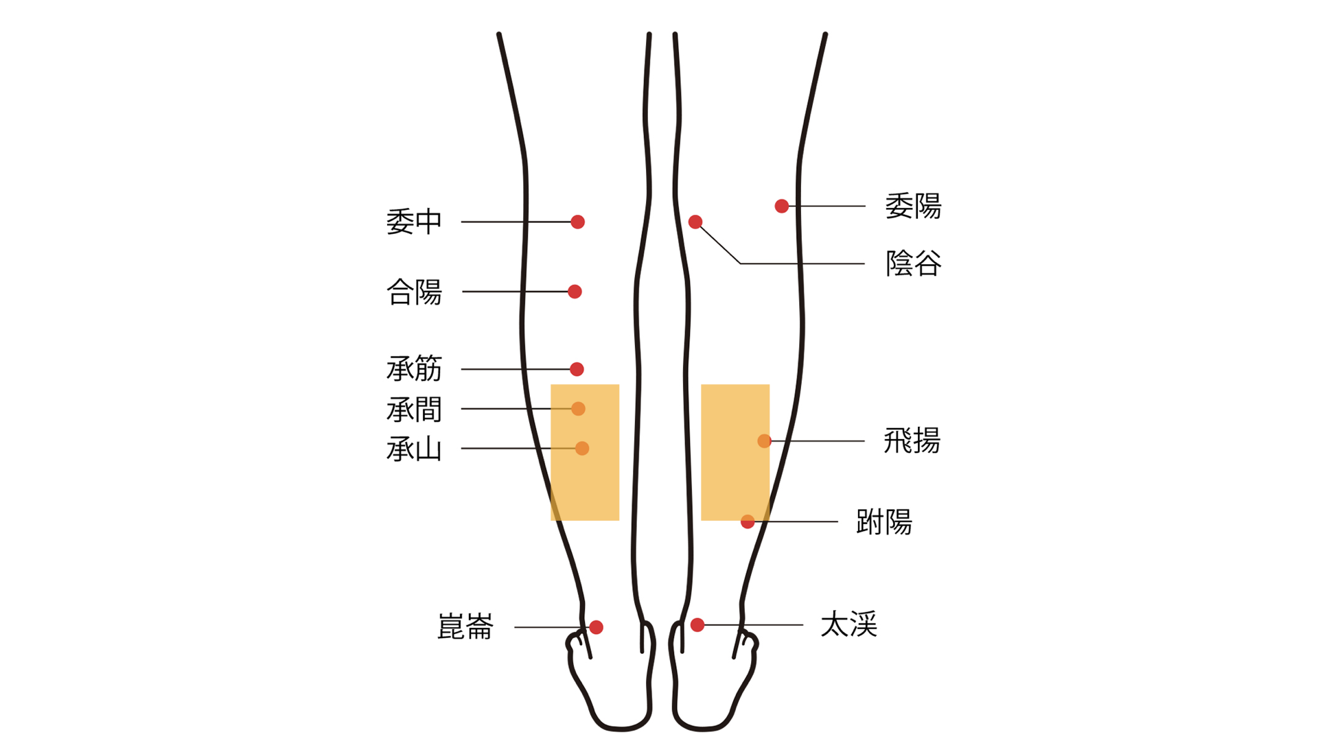 - ふくらはぎの真ん中(承山穴)をお灸もしくは小豆カイロで温める