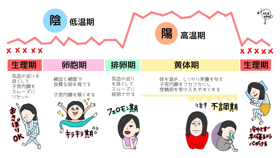 特に女性の体は、低温期・排卵期・高温期といった周期によってホルモンのバランスが大きく変わるため、その時期に合わせて施術の内容を変えることが重要です。