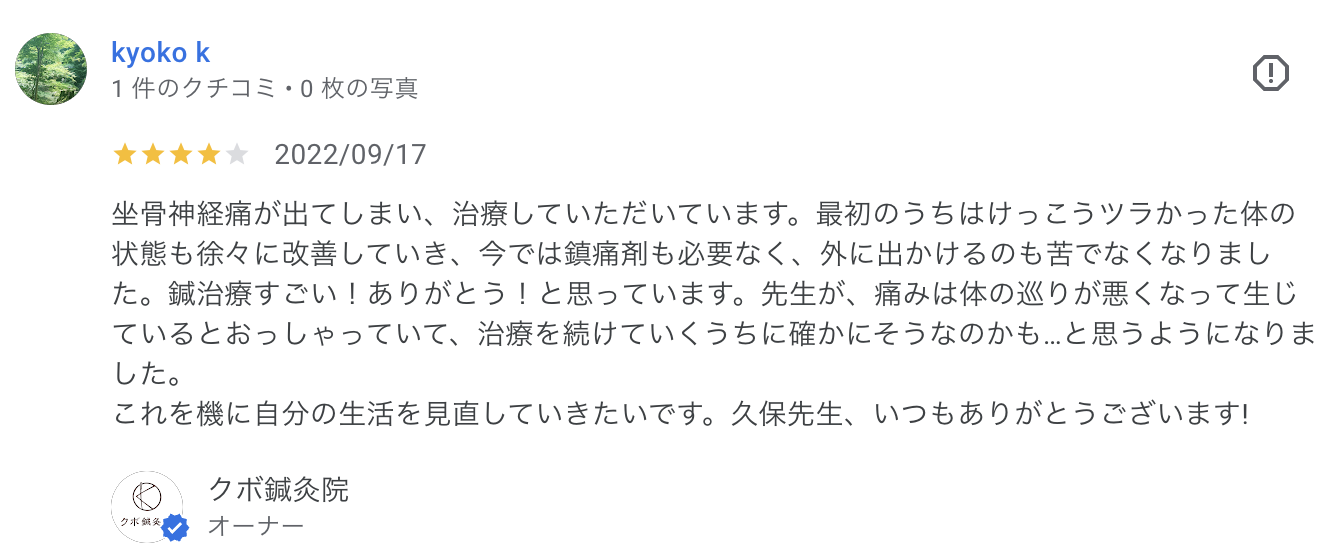 坐骨神経痛では、施術後に血流が戻る影響で一時的に痛みや重だるさが強くなることがあります。