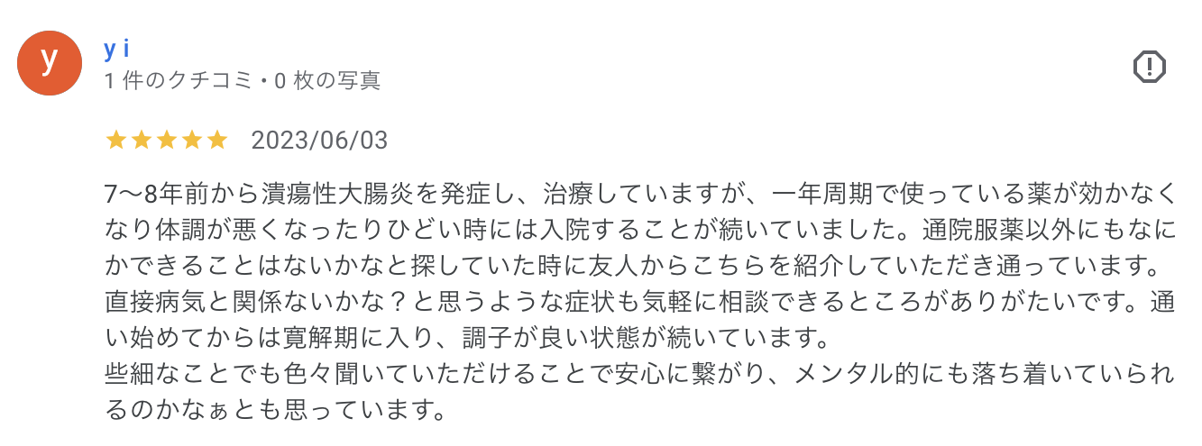 通い始めてからは寛解期に入り、調子が良い状態が続いています。