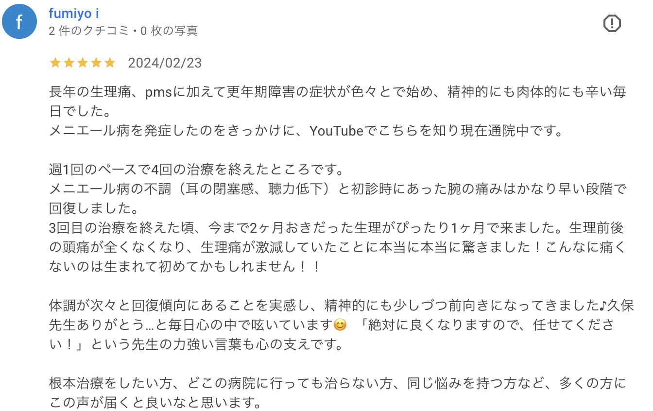 メニエール病を発症したのをきっかけに、YouTubeでこちらを知り現在通院中です。